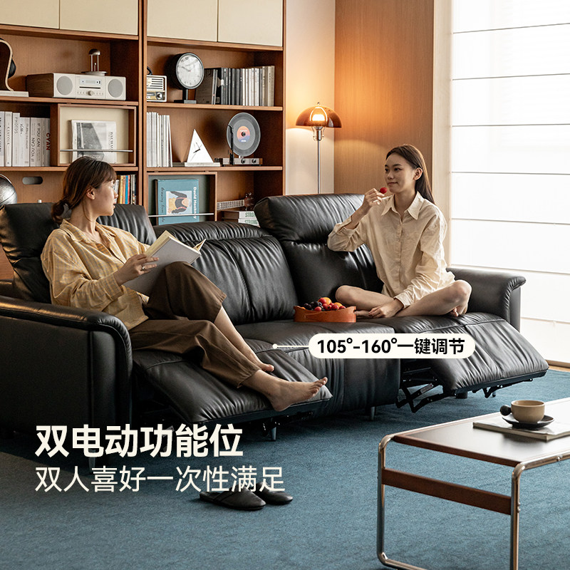 出乎生活0压电动沙发靠墙头层牛皮中古风功能沙发可调节靠背