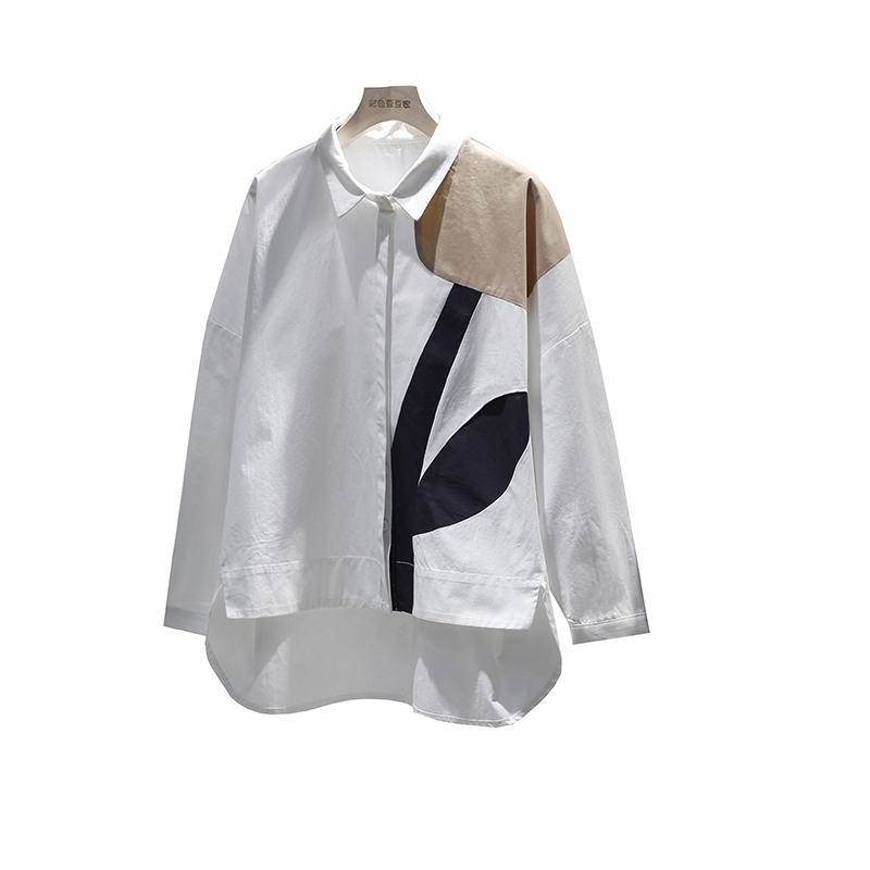 网红帅气修身印花短款衬衫女长袖宽松新款气质休闲打底上衣潮