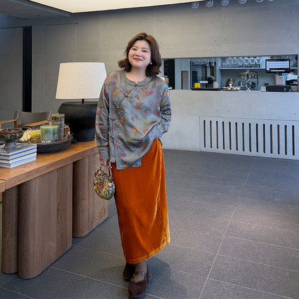 胖mm冬季丝绒直筒半身裙木子理想大码女装复古时髦长半裙200斤