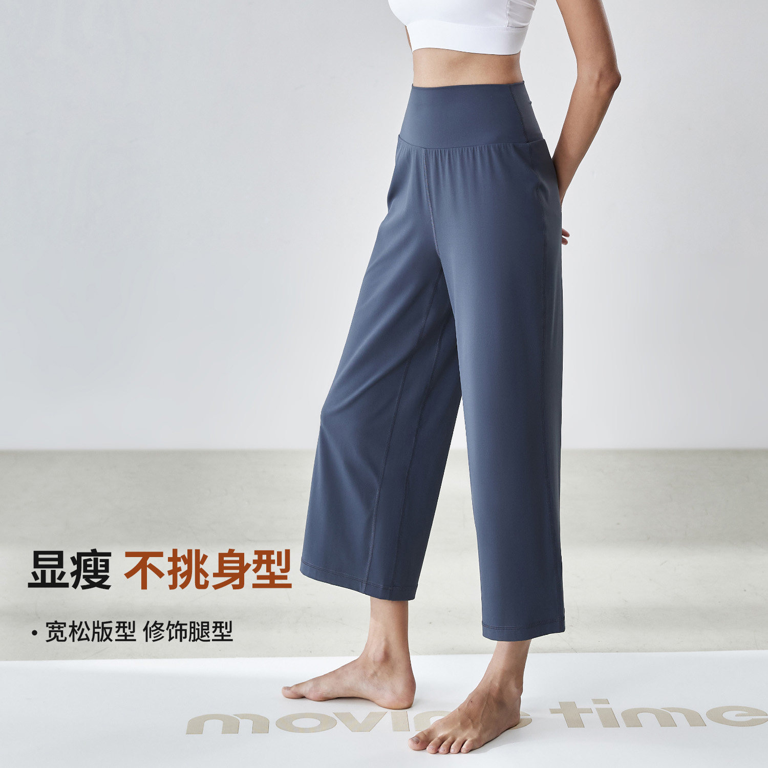 movingtime七分瑜伽裤女显瘦阔腿休闲裤直筒外穿宽松普拉提运动裤