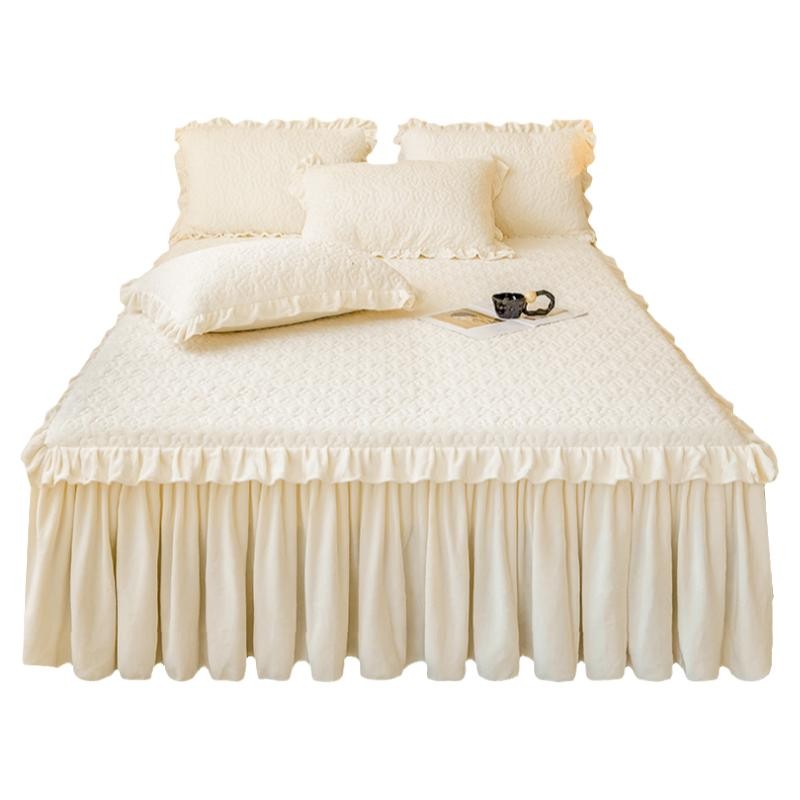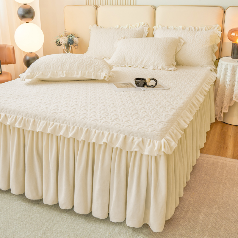 牛奶绒床笠式床裙二合一体三件套