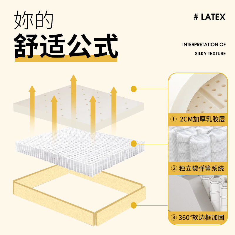 雅兰【M1】大小姐 加厚乳胶床垫独袋弹簧双面睡感床垫