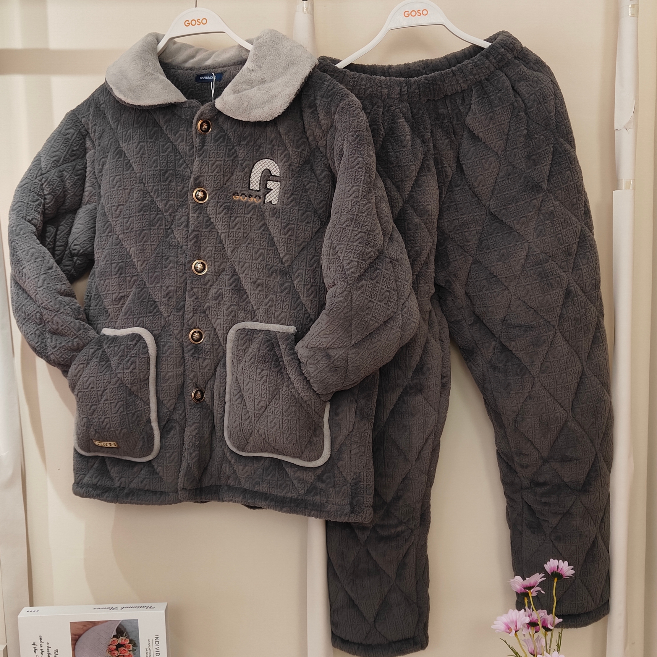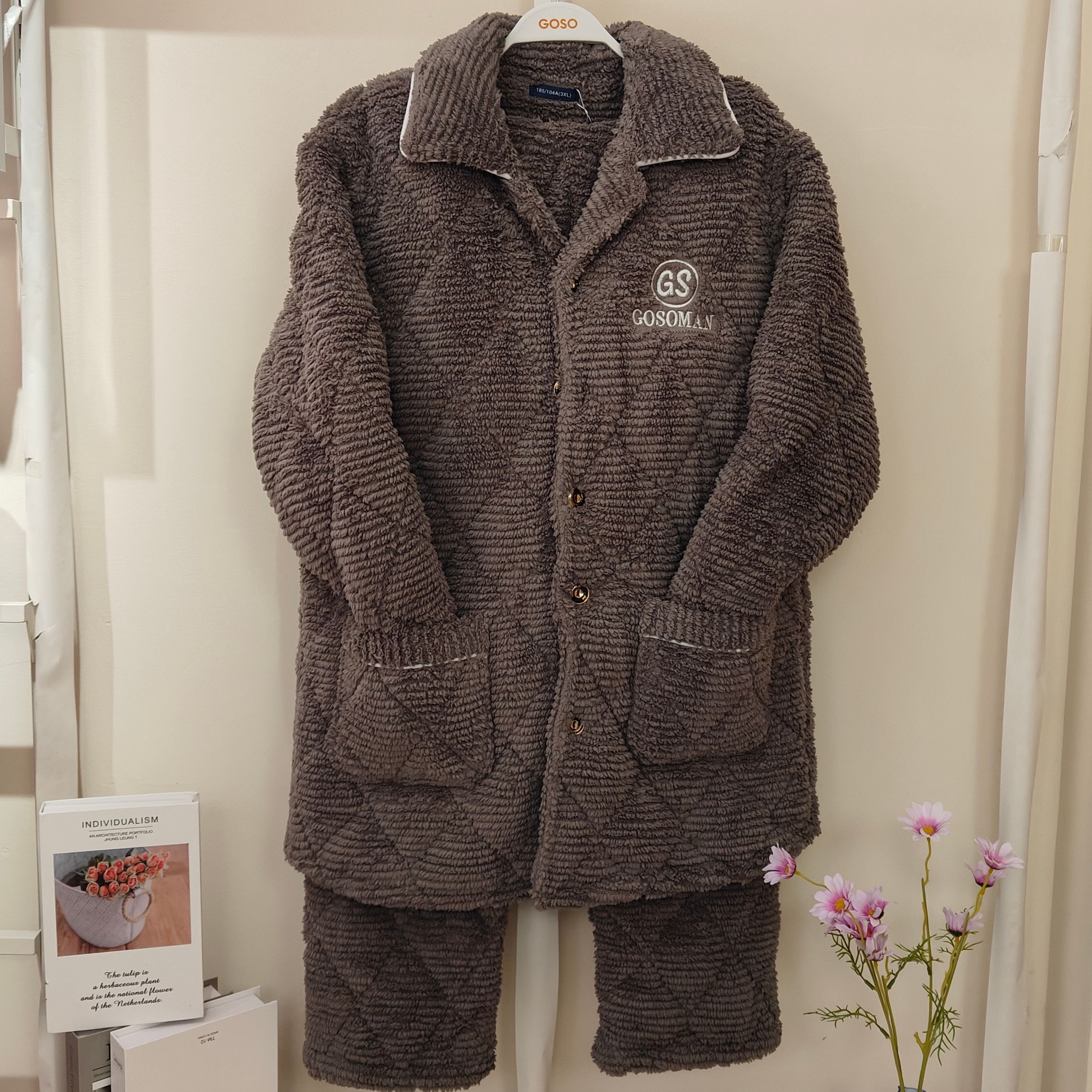 香蜜闺秀男款三层夹棉加厚睡衣防风保暖休闲可外穿舒适家居服