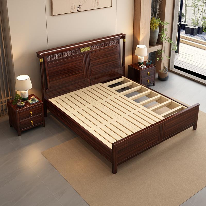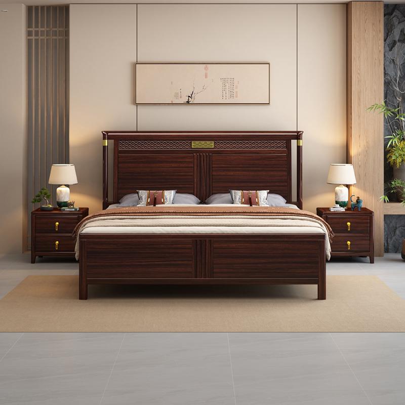新中式实木床1.5米1.8米现代简约高箱床双人床大床主卧乌金木婚床