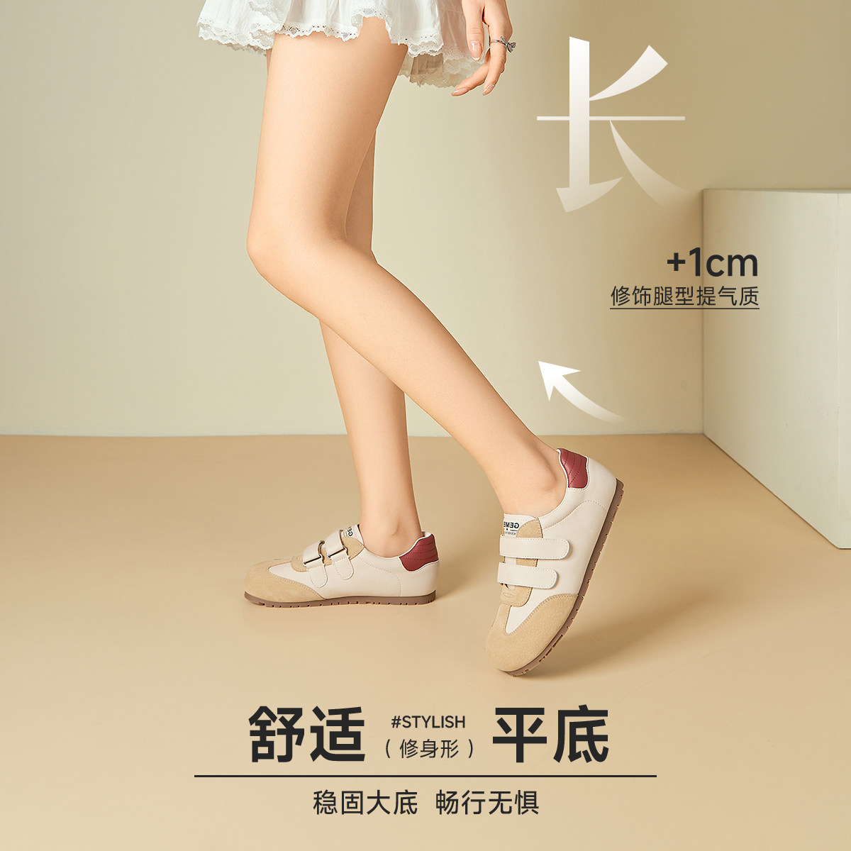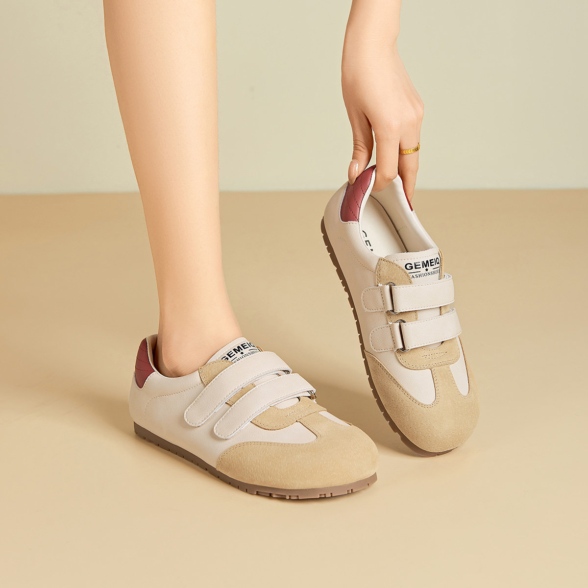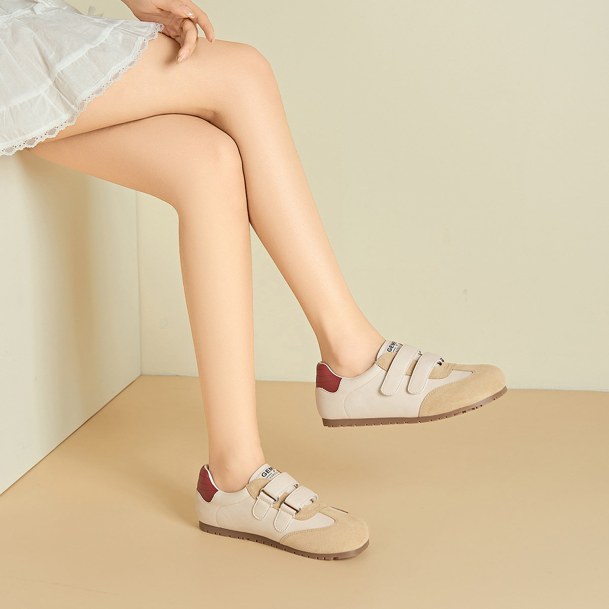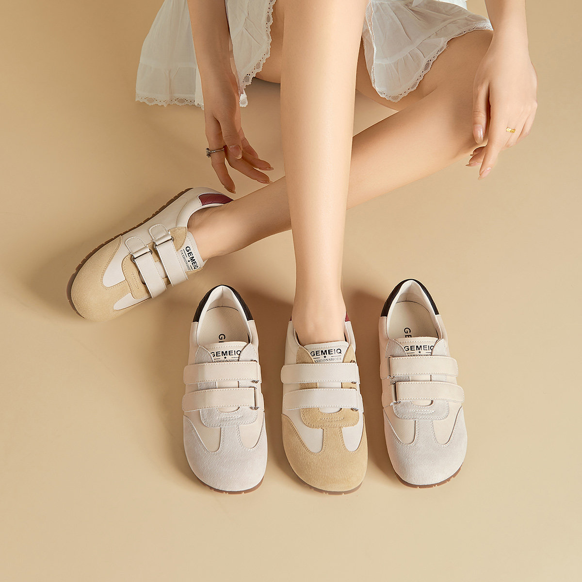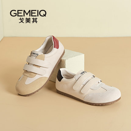戈美其商场同款德训鞋女2025新款夏透气款魔术贴真皮轻便小白鞋女