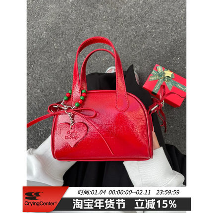 CryingCenter圣诞红mini波士顿蝴蝶结油蜡亮皮大学生经典斜挎皮包
