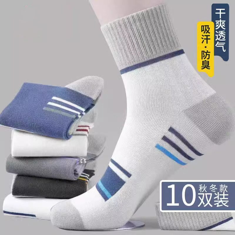 诸暨运动袜子男款春秋季透气吸汗中筒袜防臭青少年长筒袜纯色棉袜