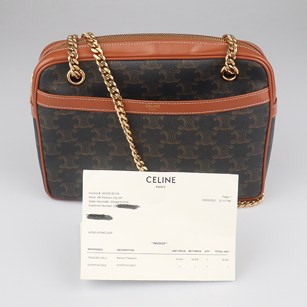 【自营】中古9新赛琳PATAPANS 标志印花手袋女包斜挎包包帆布涂层