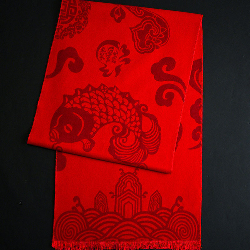 红色围巾冬季拼色款简约风