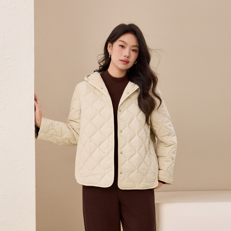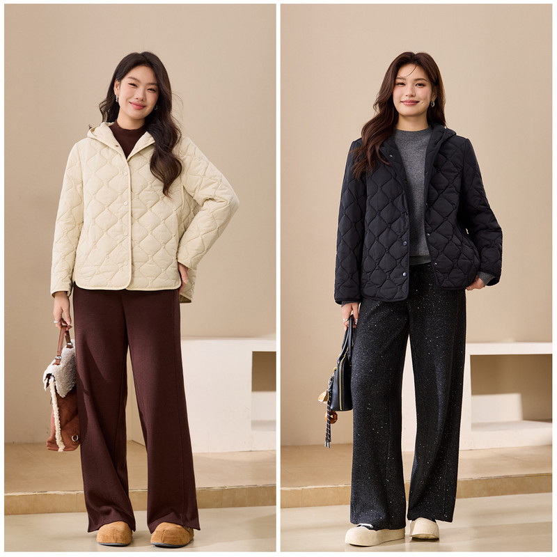 【摩洛哥】菱格短款宽松连帽棉服纤莉秀大码女装胖mm2025冬装新款