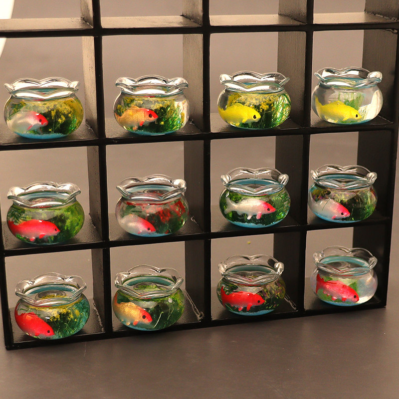 微缩食玩迷你仿真锦鲤金鱼小鱼缸景观场景模型娃娃屋家具配件摆件
