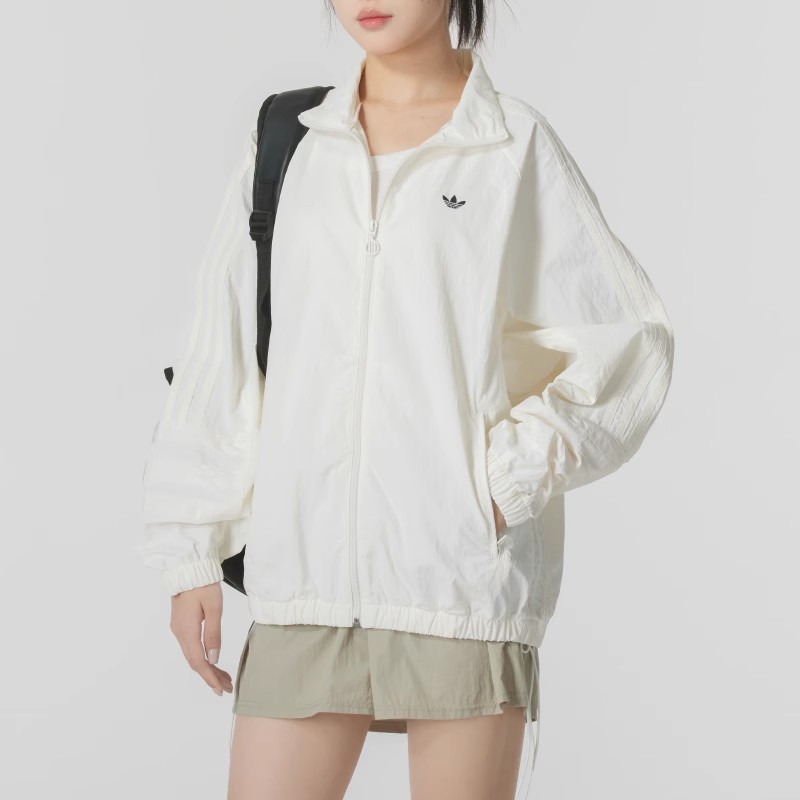 正品阿迪达斯三叶草女速干梭织外套RUCHED TT连帽运动夹克JD6386