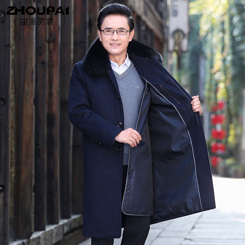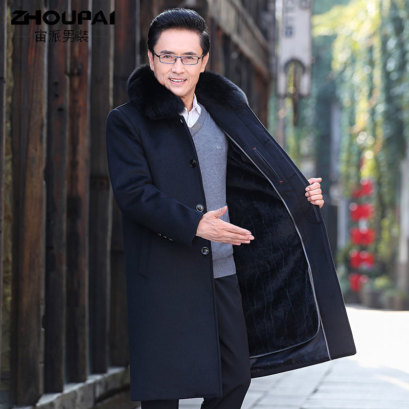 冬季新款中老年毛呢大衣男爸爸冬装外套加绒加厚长款羊毛呢子风衣