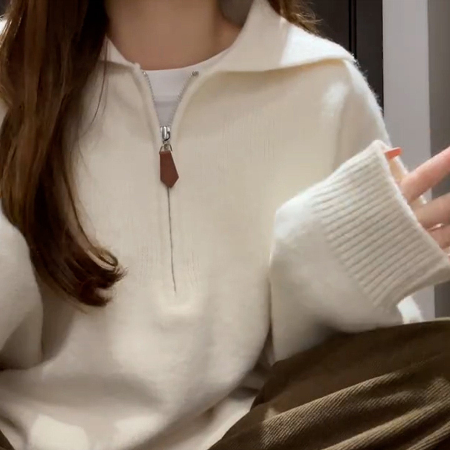 白色翻领套头毛衣女秋冬