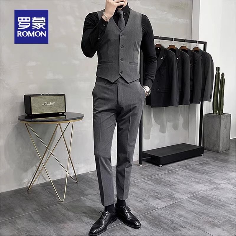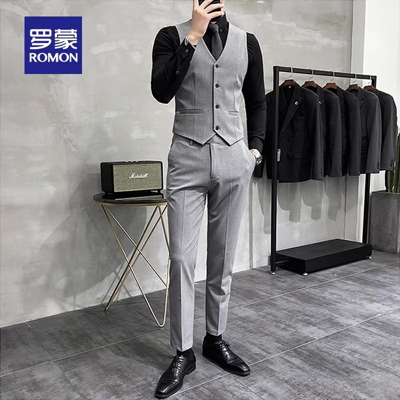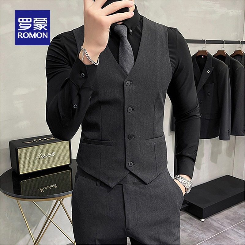 罗蒙新郎西装马甲套装男士结婚伴郎商务职正装业修身工作服兄弟装