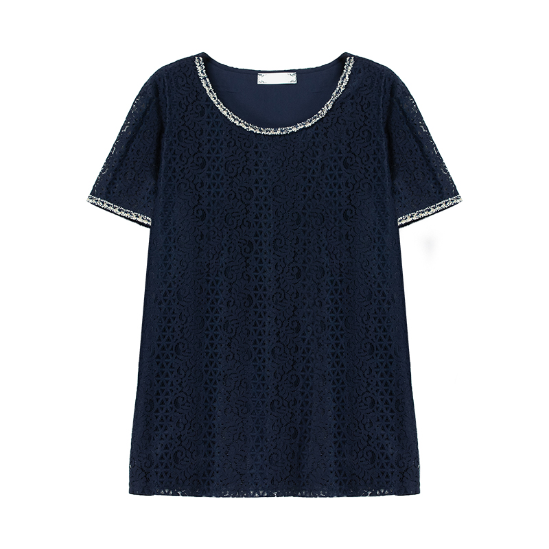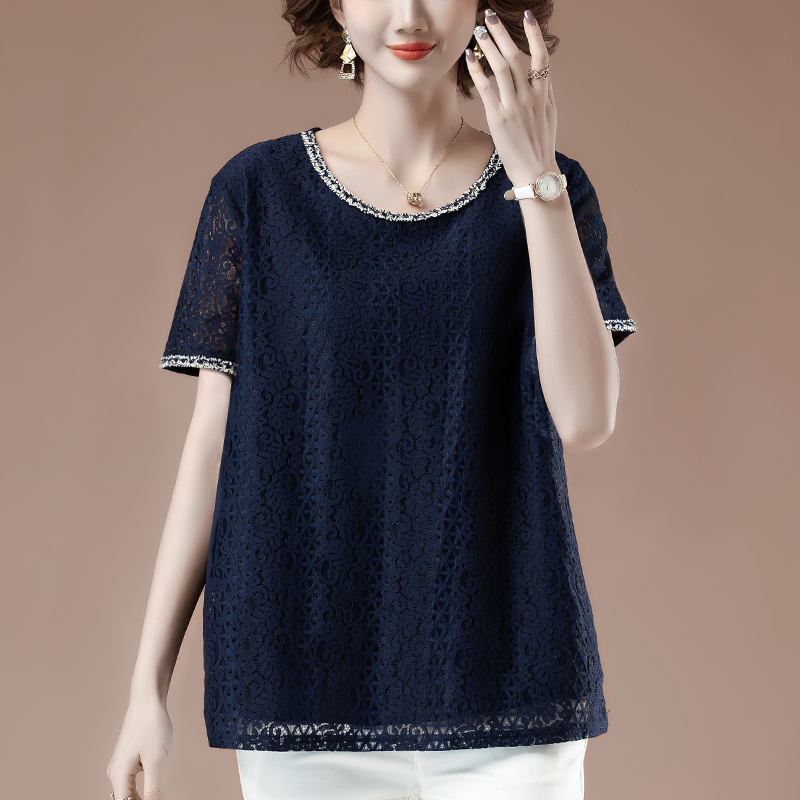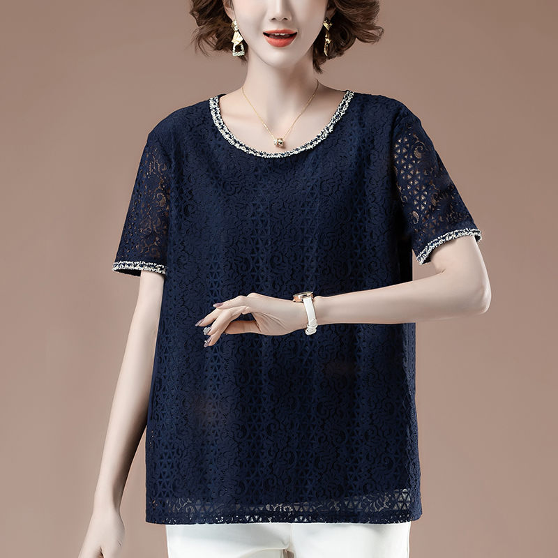 中老年妈妈夏季短袖蕾丝衫女宽松加肥加大码女装洋气遮肚显瘦上衣