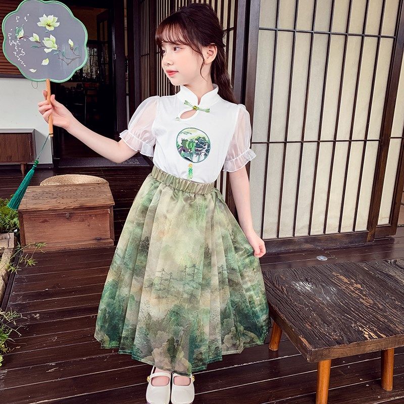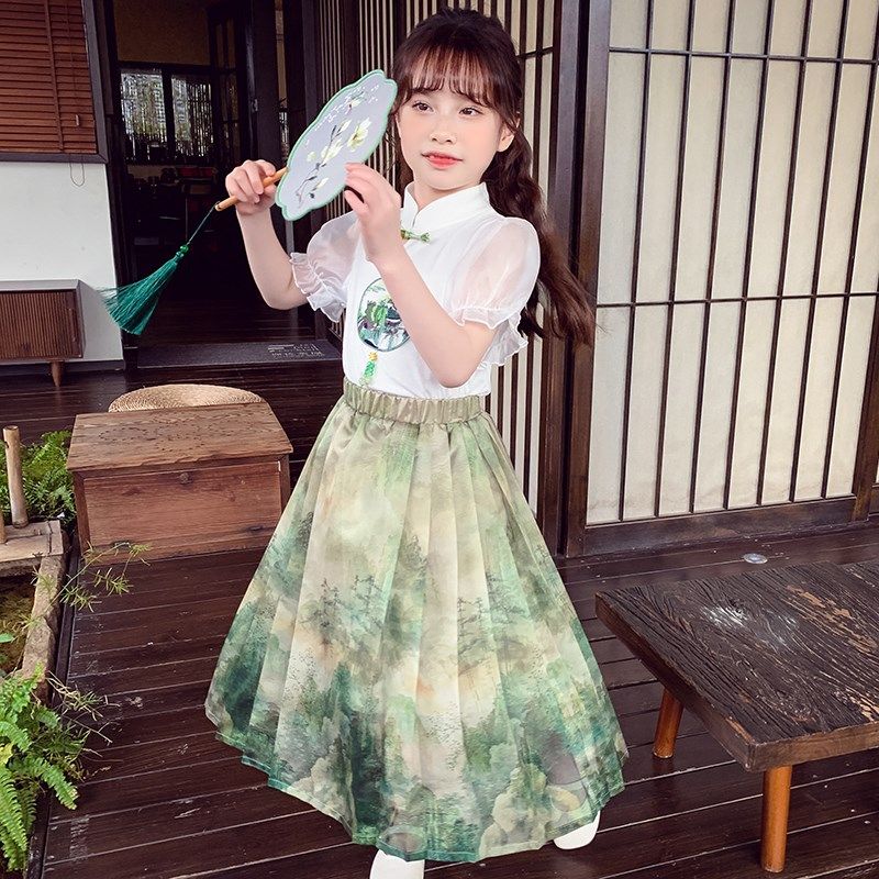 女童马面裙套装新中式儿童汉服公主裙夏装2024新款洋气小女孩套裙