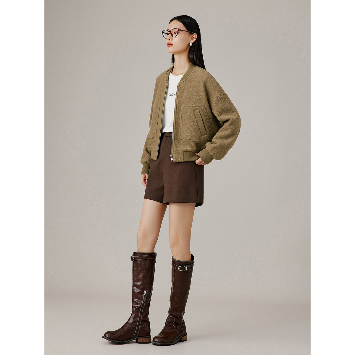 衣香丽影圈圈羊毛棒球服女2025年秋冬季新款宽松休闲运动风短外套