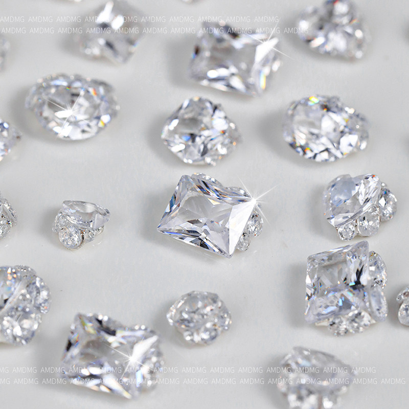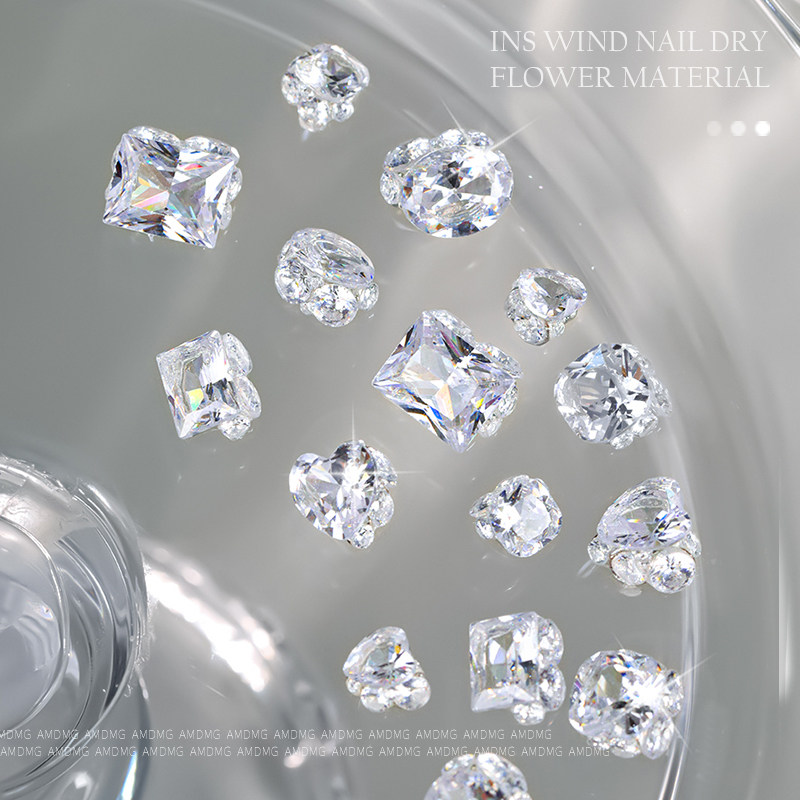 网红爆款超闪肥方爱心鸽子蛋透明冰糖锆石美甲堆钻指甲装饰品配件