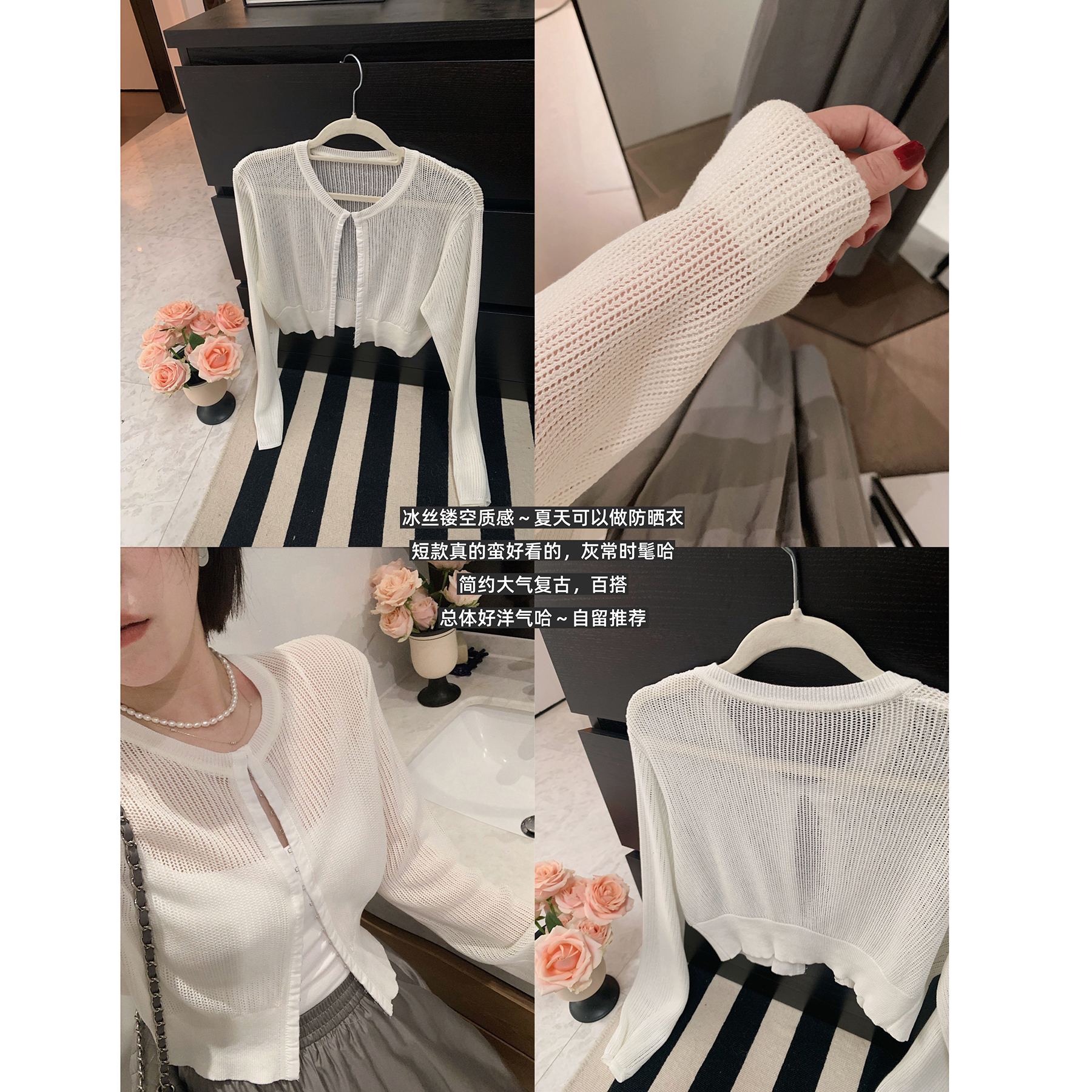 misslady复古设计短款镂空冰丝针织开衫防晒衣女百搭2025夏季新款