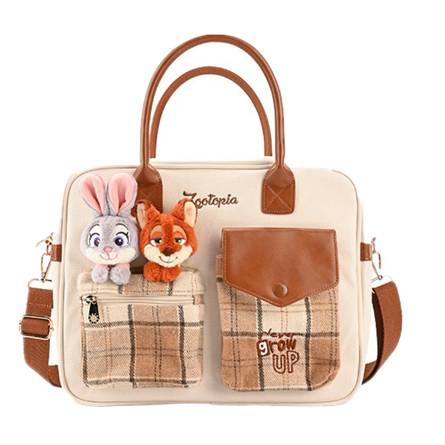 迪士尼疯狂动物城维尼熊毛绒斜挎包朱迪尼克帆布大容量手提单肩包
