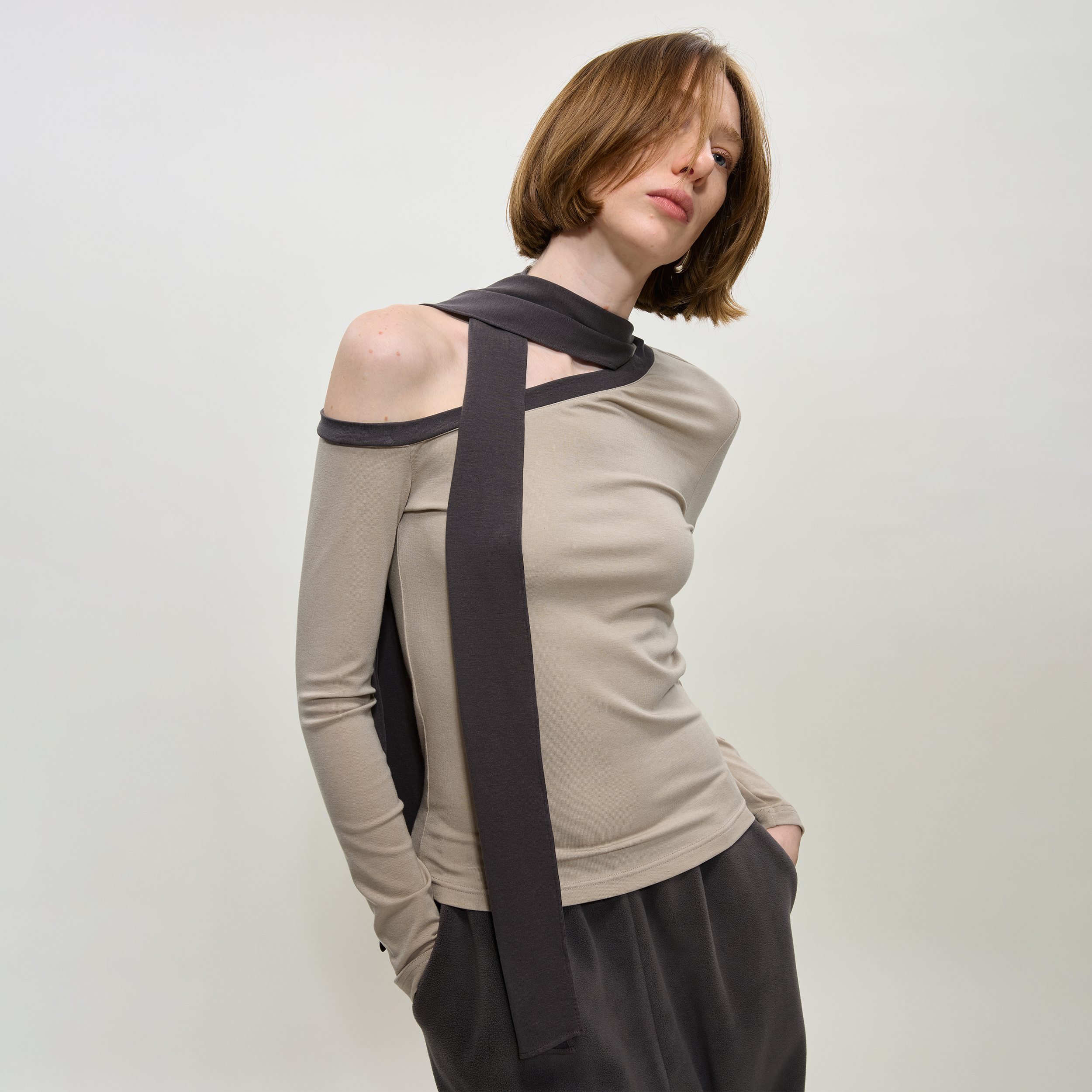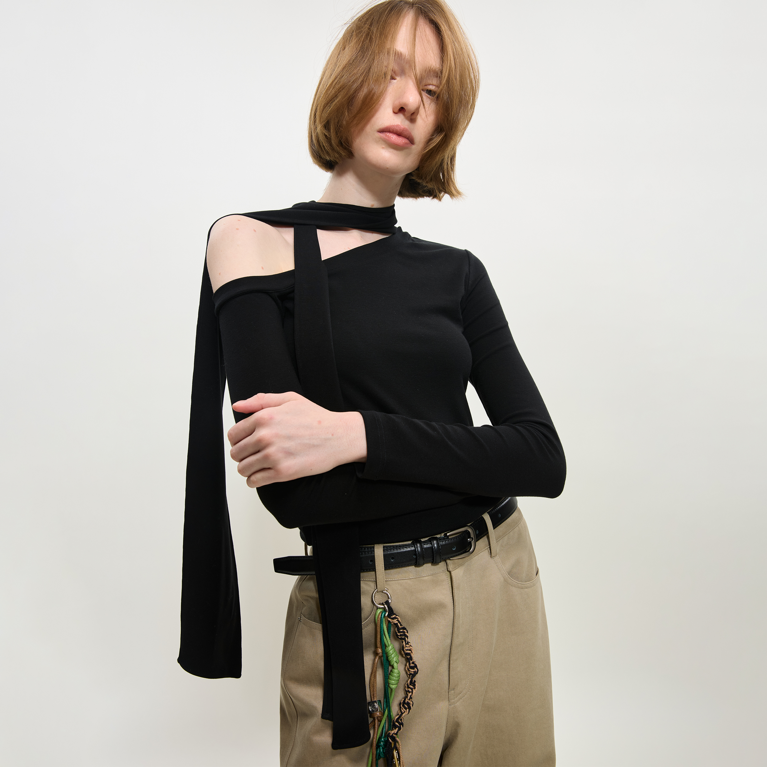 PHISM【新品发布】25年秋冬飘带露肩T恤女款设计感露肩长袖T恤