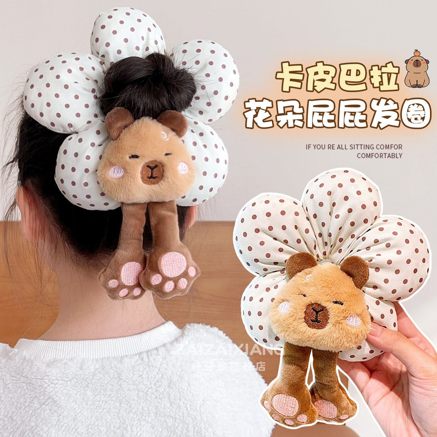 卡通小猫屁屁儿童大肠发圈女童花朵头饰2025新款丸子头充棉扎发绳