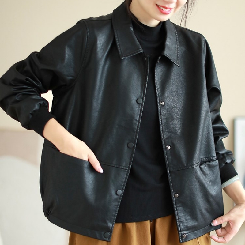 韩版大码女装宽松机车夹克皮衣秋冬新款百搭pu皮衣翻领开衫短外套