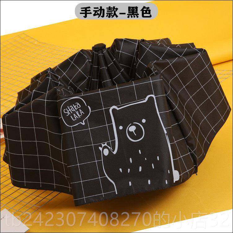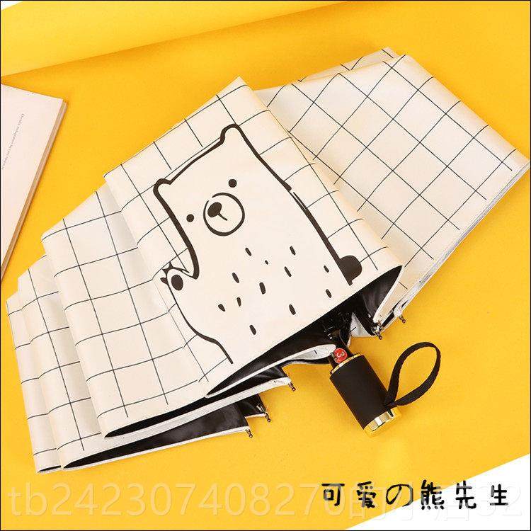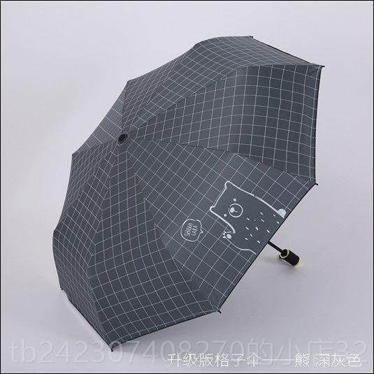 正品阳简约格子少女i胶ns雨伞三折遮晴阳防晒防紫外线小熊黑太伞
