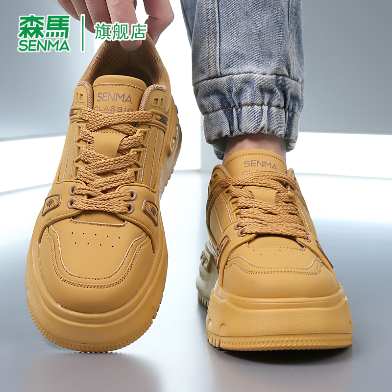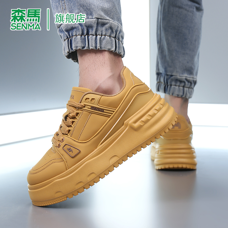 森马休闲板鞋男士2025秋季新款厚底真皮青少年防滑轻便潮流运动鞋