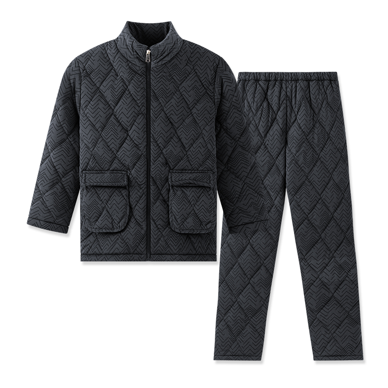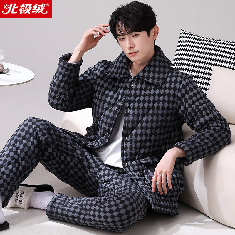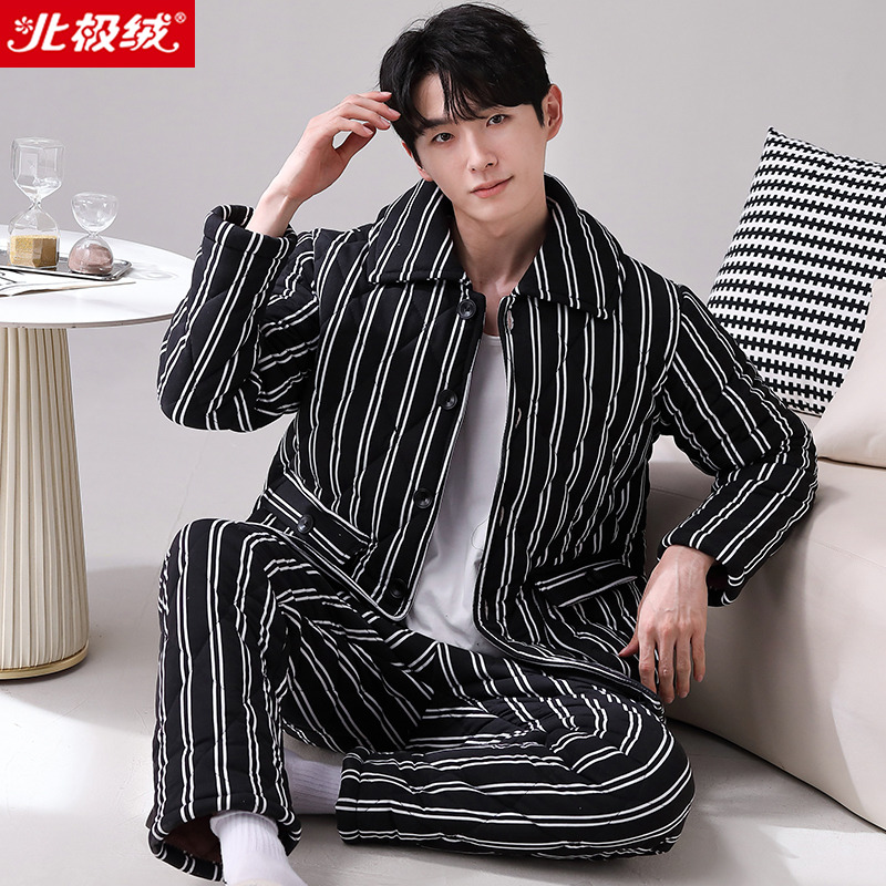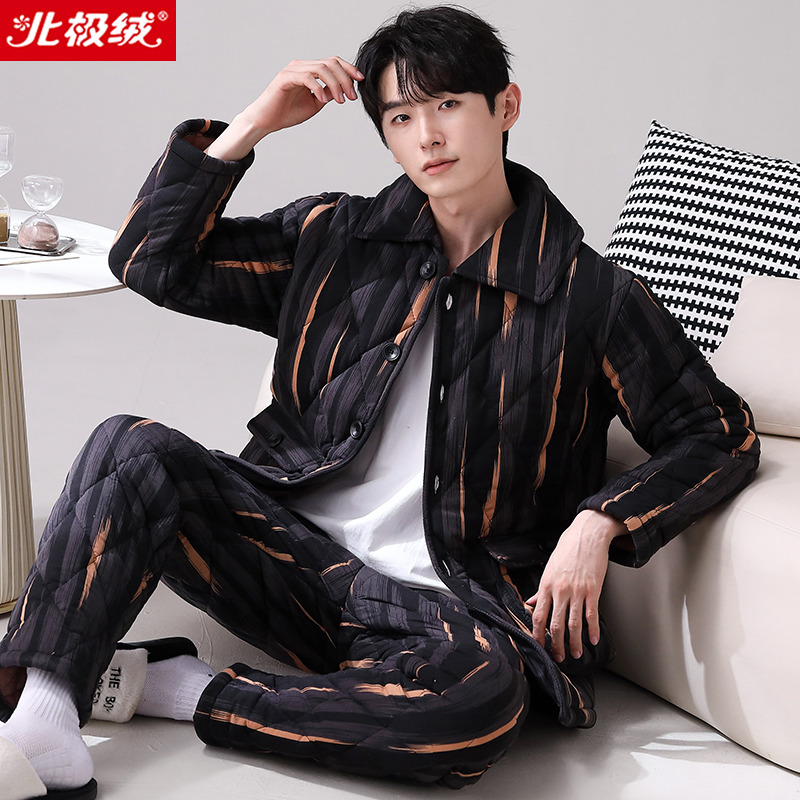 2025年睡衣男士冬季纯棉加绒三层加厚夹棉保暖棉袄拉链家居服套装