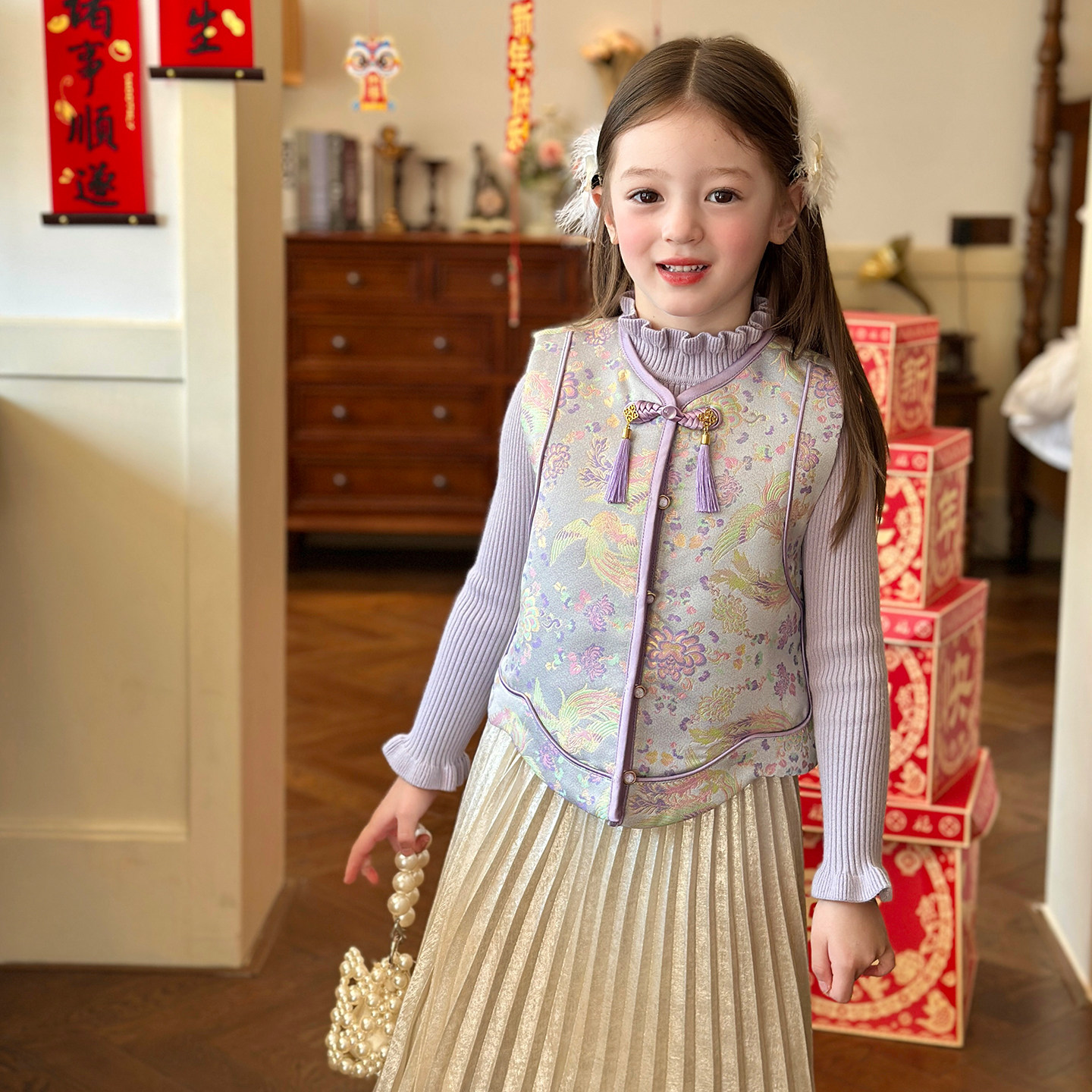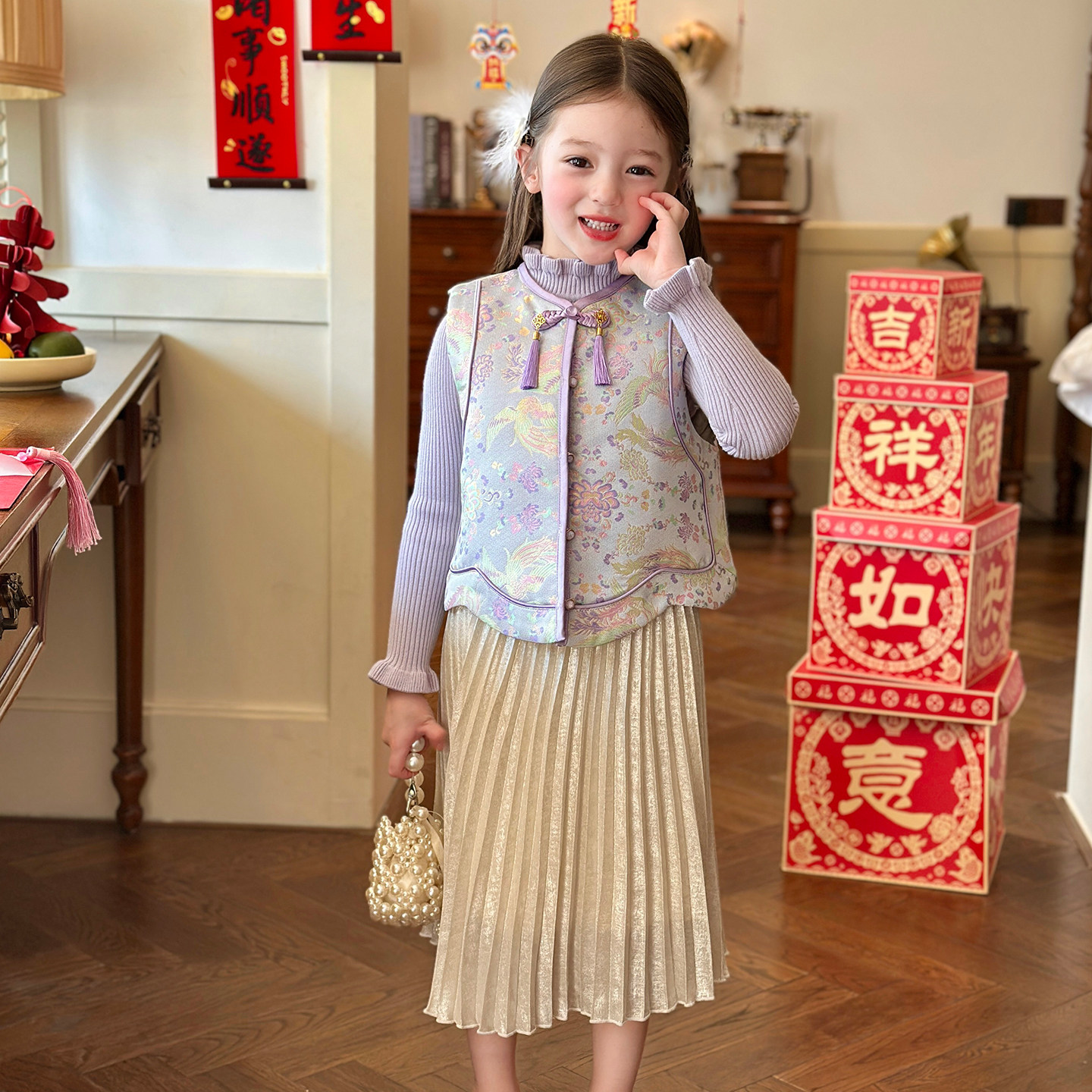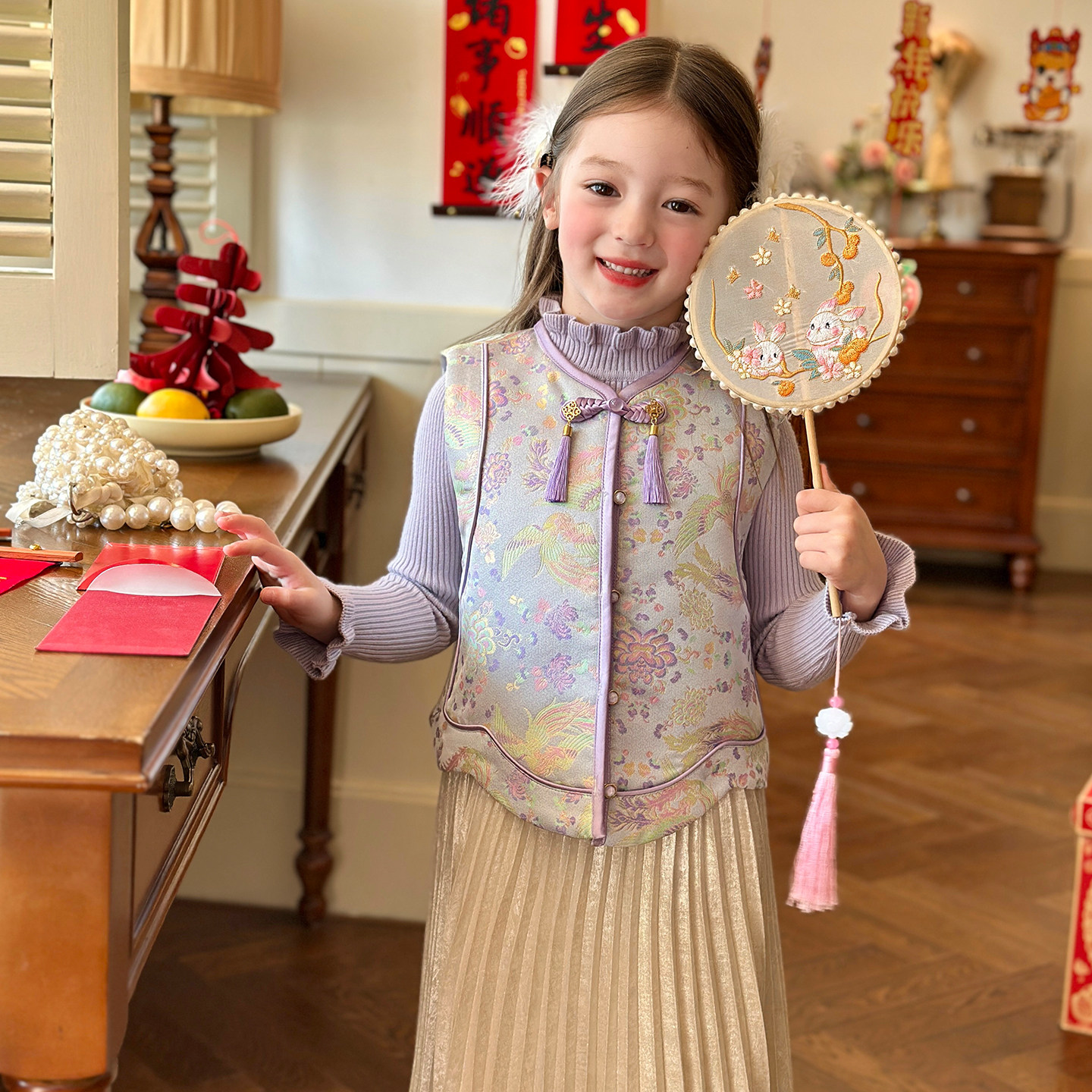 栀了成长记童装女童新中式套装马甲2025冬季儿童国风夹棉外穿背心