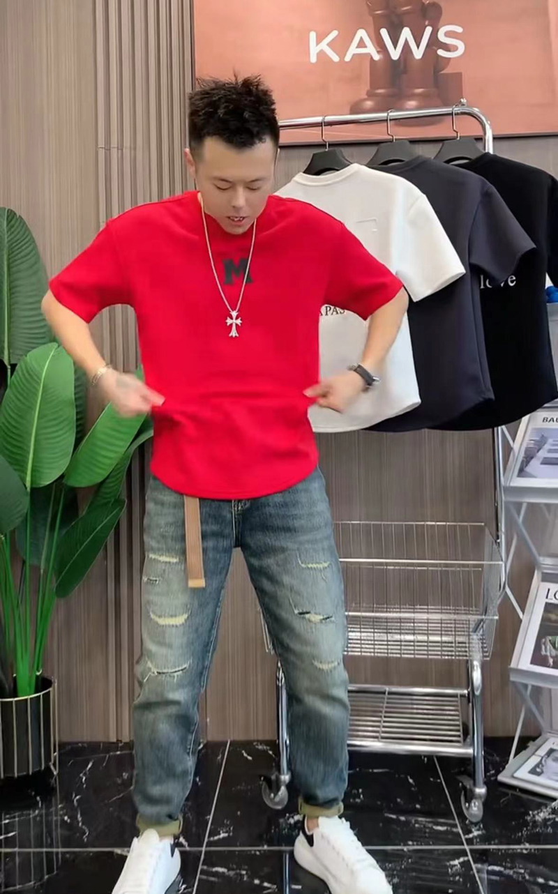 2025年夏季新款男士百搭T恤时尚上衣休闲短袖字母钢印潮流宽松
