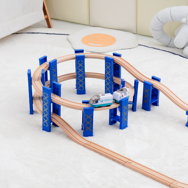 木制玩具火车超长轨道配件 桥墩 适合木质轨道车布里奥木头轨道