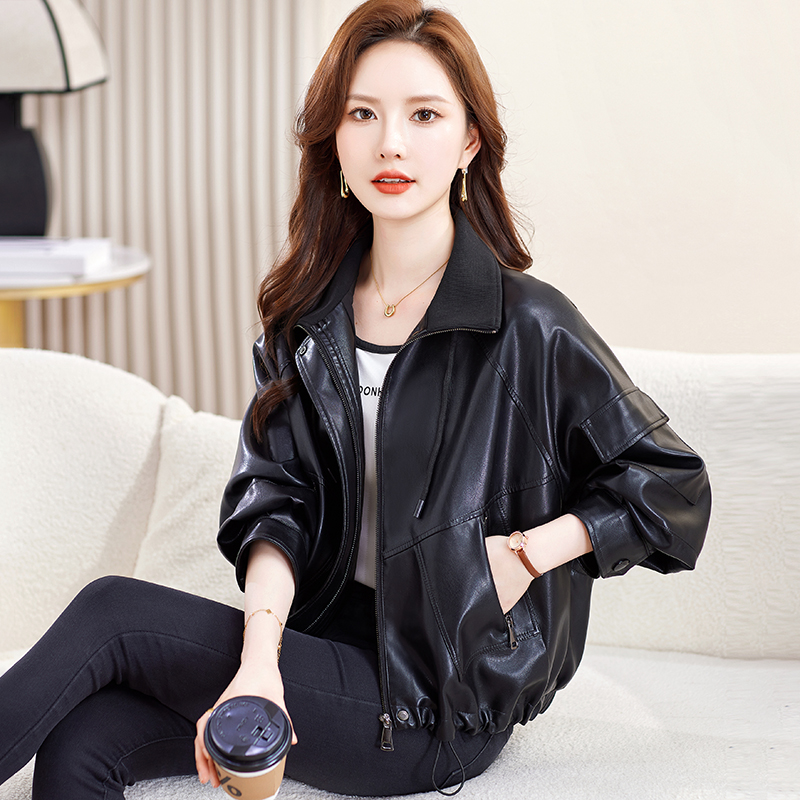 真皮皮衣女宽松短款2025秋大码绵羊皮机车皮夹克小个子蝙蝠袖外套