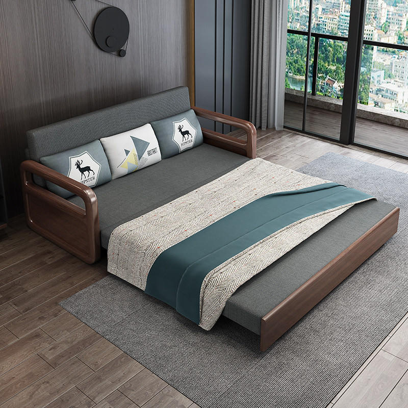 尚品宅配实木沙发床可折叠多功能小户型客厅双人网红款储物北欧两