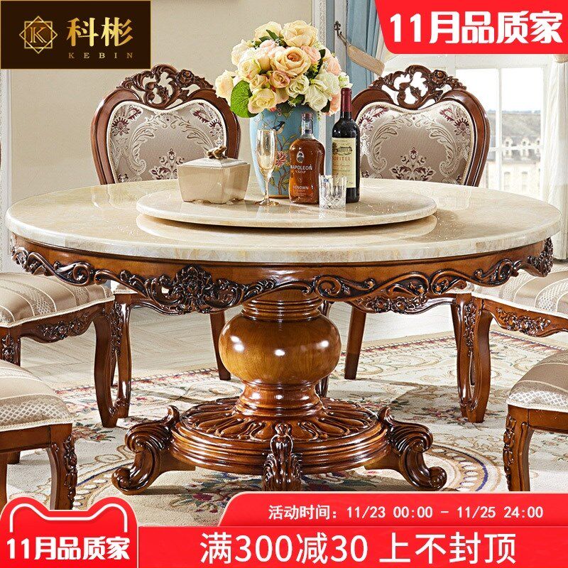 欧式圆桌美式实木奢华餐厅成套家具组合酒店餐桌饭桌带转盘圆桌椅