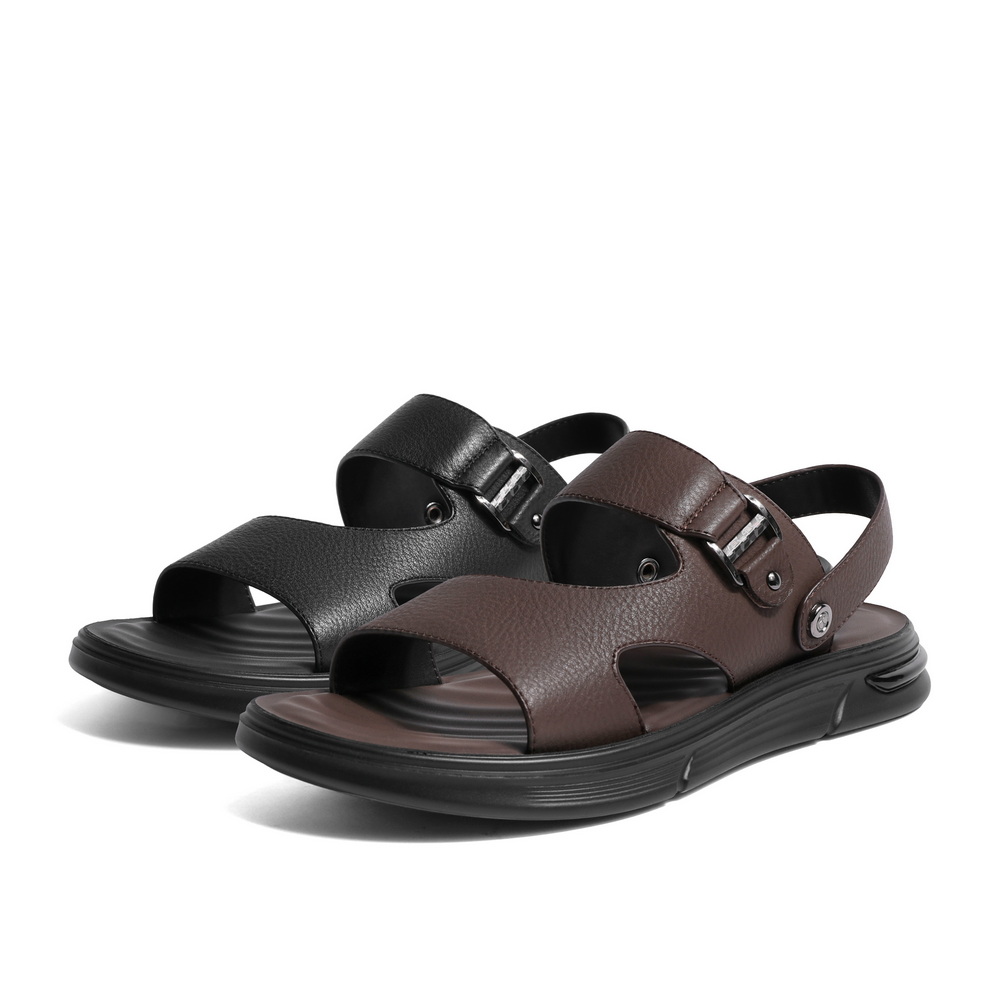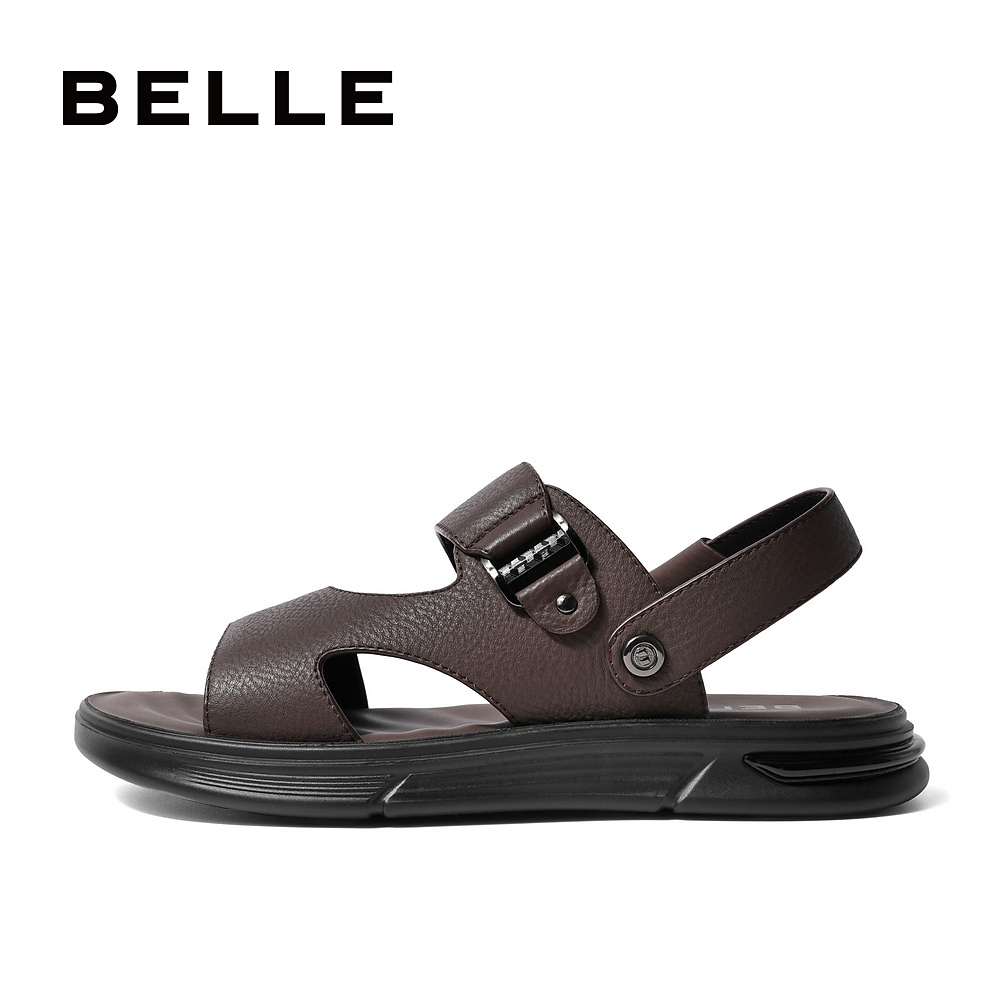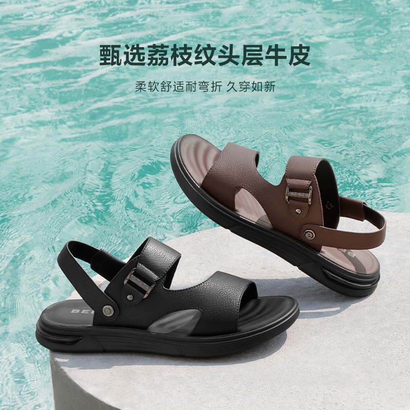 百丽男鞋沙滩凉鞋皮凉鞋夏季商场同款休闲真皮户外拖鞋男7YG01BL3
