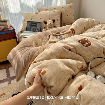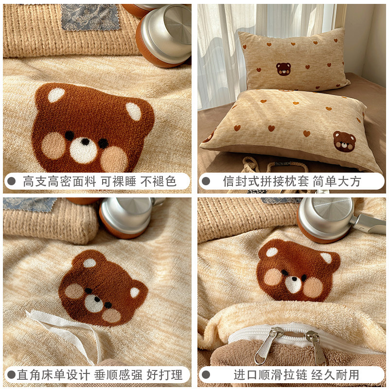 卡通牛奶绒四件套高克重冬季加厚双面珊瑚绒床单被套宿舍三件套