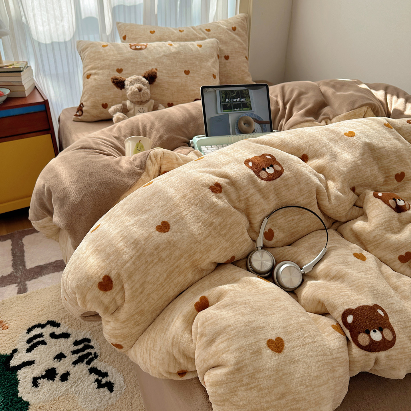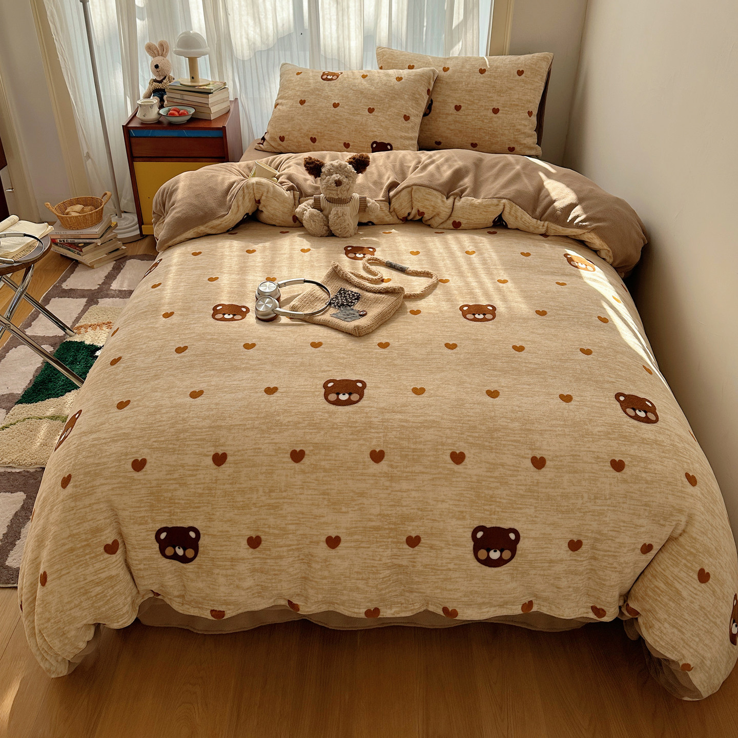 卡通可爱牛奶绒四件套2025新款