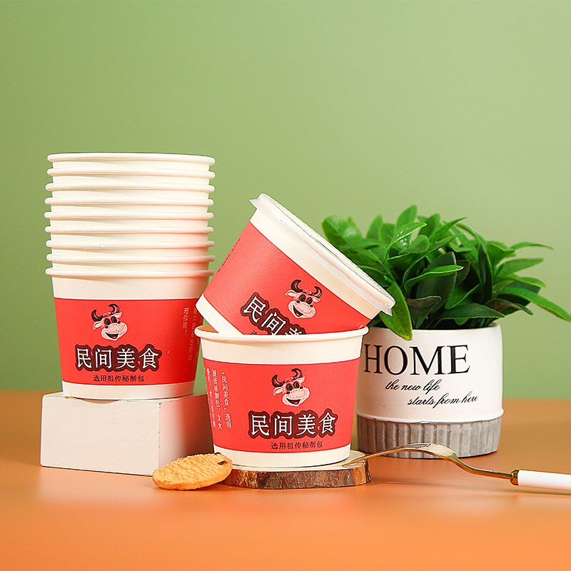 加厚12安士一次性环保纸碗牛杂碗小食纸碗小吃圆形商用打包碗整箱