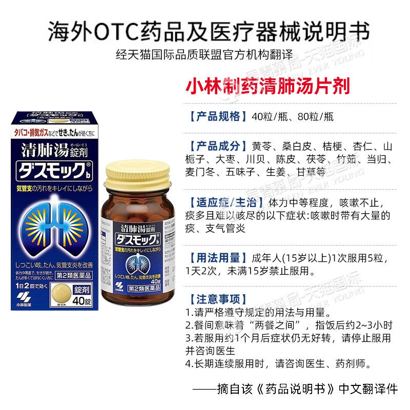 日本小林制药清肺汤80粒清肺丸润肺支气管炎特效止咳嗽化痰止咳药