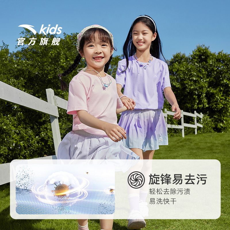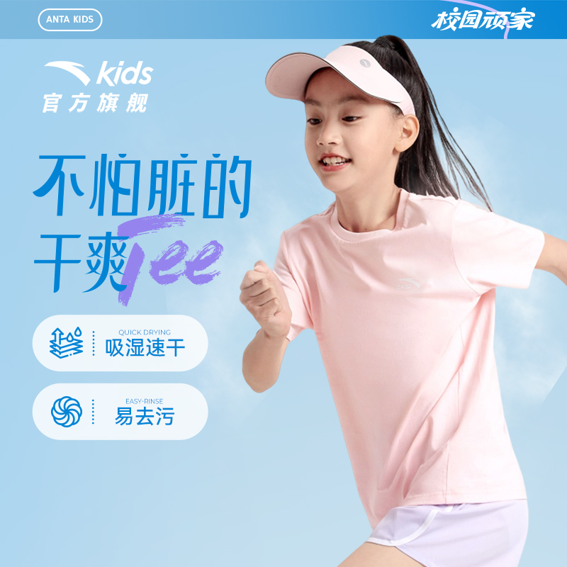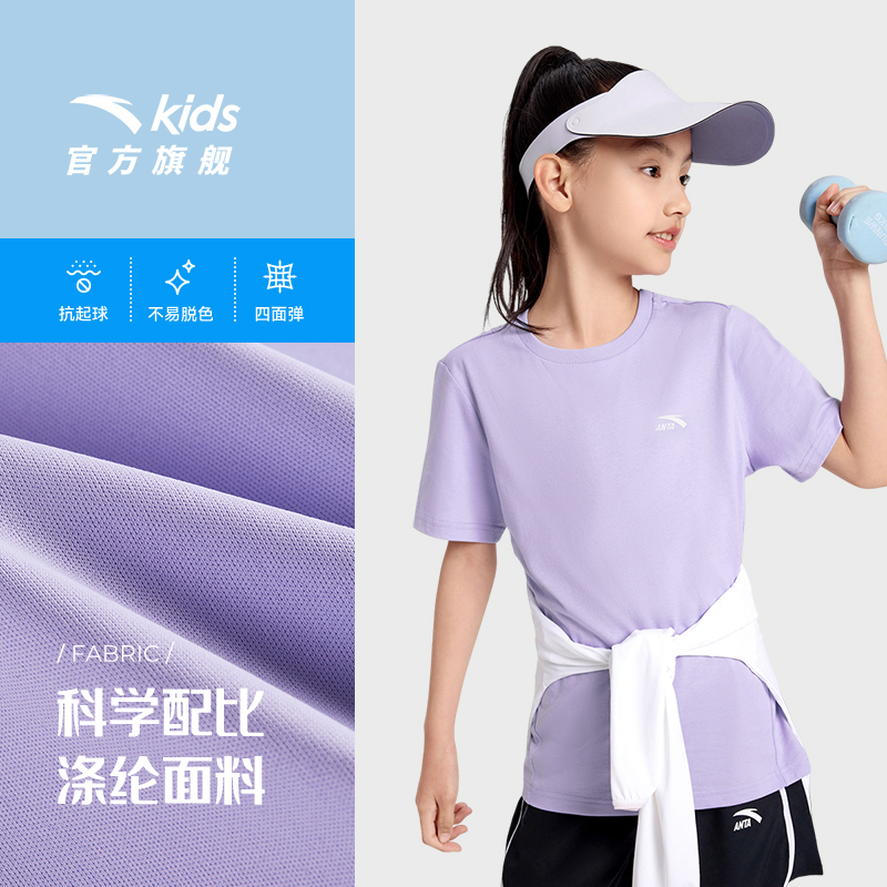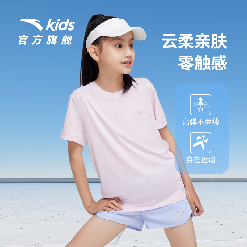 安踏儿童T恤女童速干短袖夏季新款运动童装女孩上衣大童夏装正品