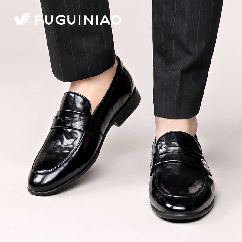 富贵鸟男鞋新款真皮休闲皮鞋男士软底防滑一脚蹬豆豆鞋潮流驾车鞋