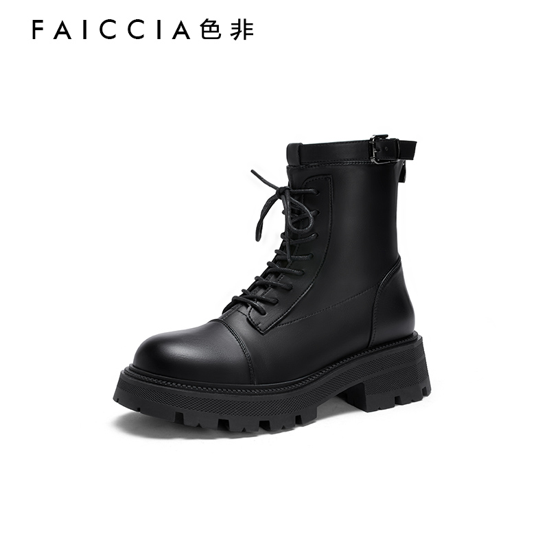 色非系带厚底增高防滑女马丁靴