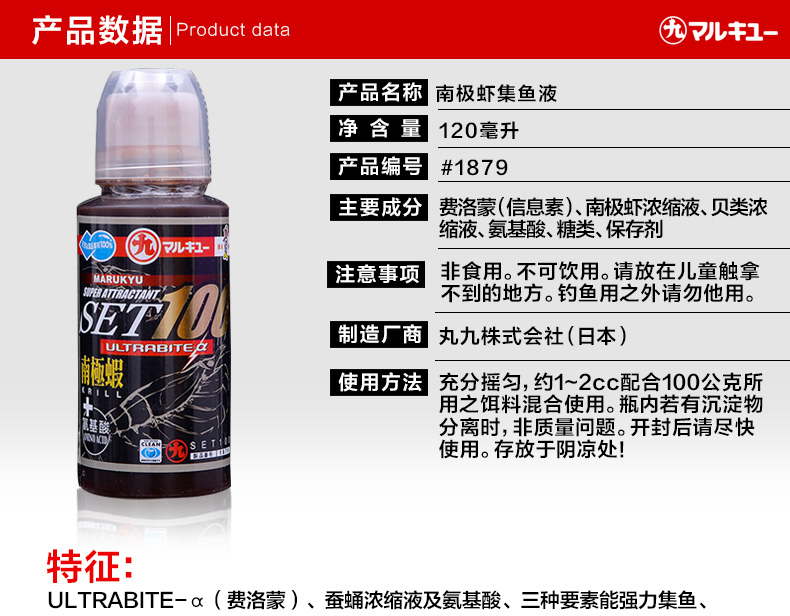 日本进口丸九鲫鱼小药南极虾液虾粉钓鲤鱼液牡蛎蚕蛹集鱼液添加剂