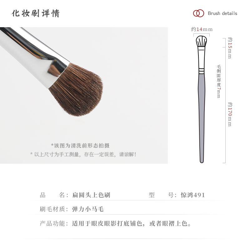 琴制化妆刷惊鸿系列491扁圆形眼影刷一支装晕染刷沧州刷子上色刷