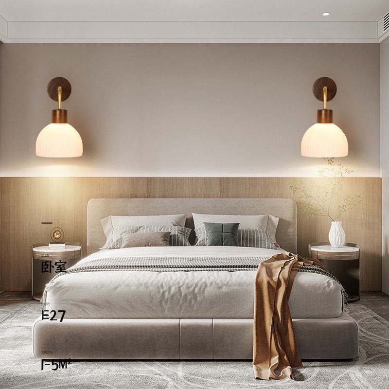 新中式胡桃木色实木卧室床头x壁灯简约现代民宿过道装饰房间新款