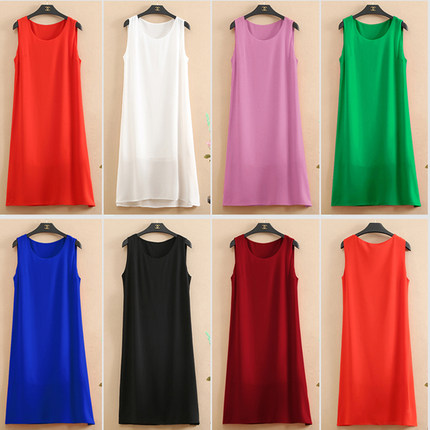 雪纺吊带背心裙子女中长款t内搭外穿夏季宽松无袖打底上衣大码新