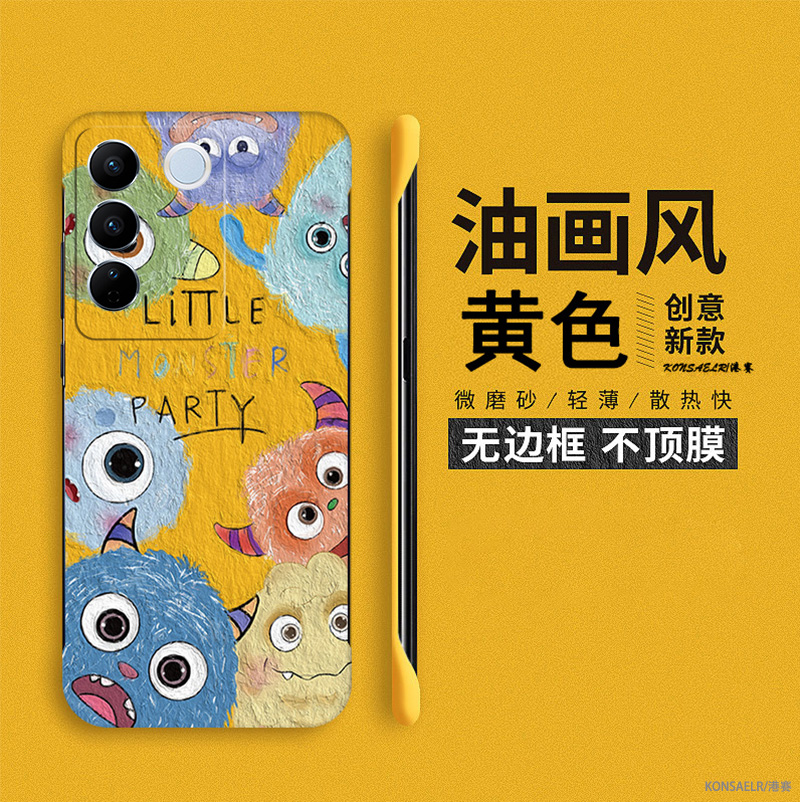 油画小怪兽家族适用vivos17手机壳s16pro新款s15无边框s15e超薄s12裸机s10磨砂s9套s7女s6卡通s5可爱S1高级感